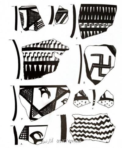 نقوش سفال های به دست آمده از یان تپه محوطه باستانی ازبکی متعلق به هزاره هفتم قبل از میلاد مسیح