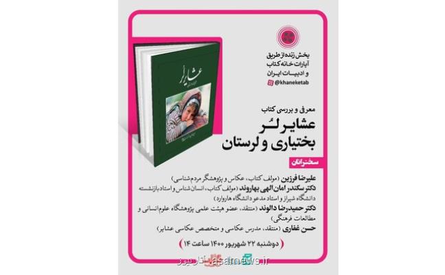 علاقه مندان می توانند برای تماشای نشست معرفی و بررسی کتاب «عشایر لُر؛ بختیاری و لرستان» به آدرس www.aparat.com/khaneketab مراجعه کنند.